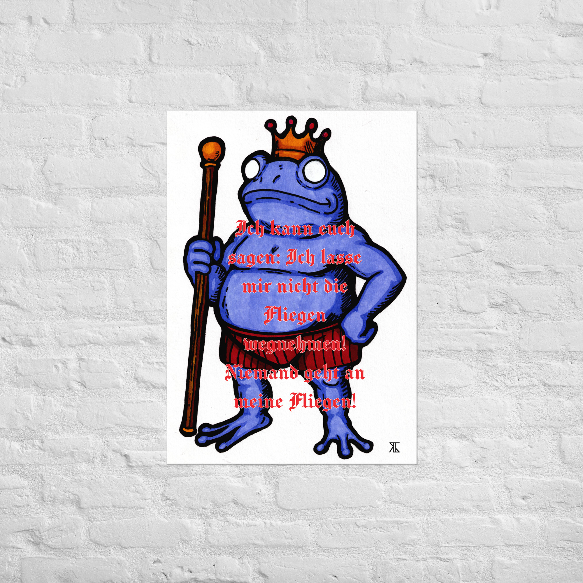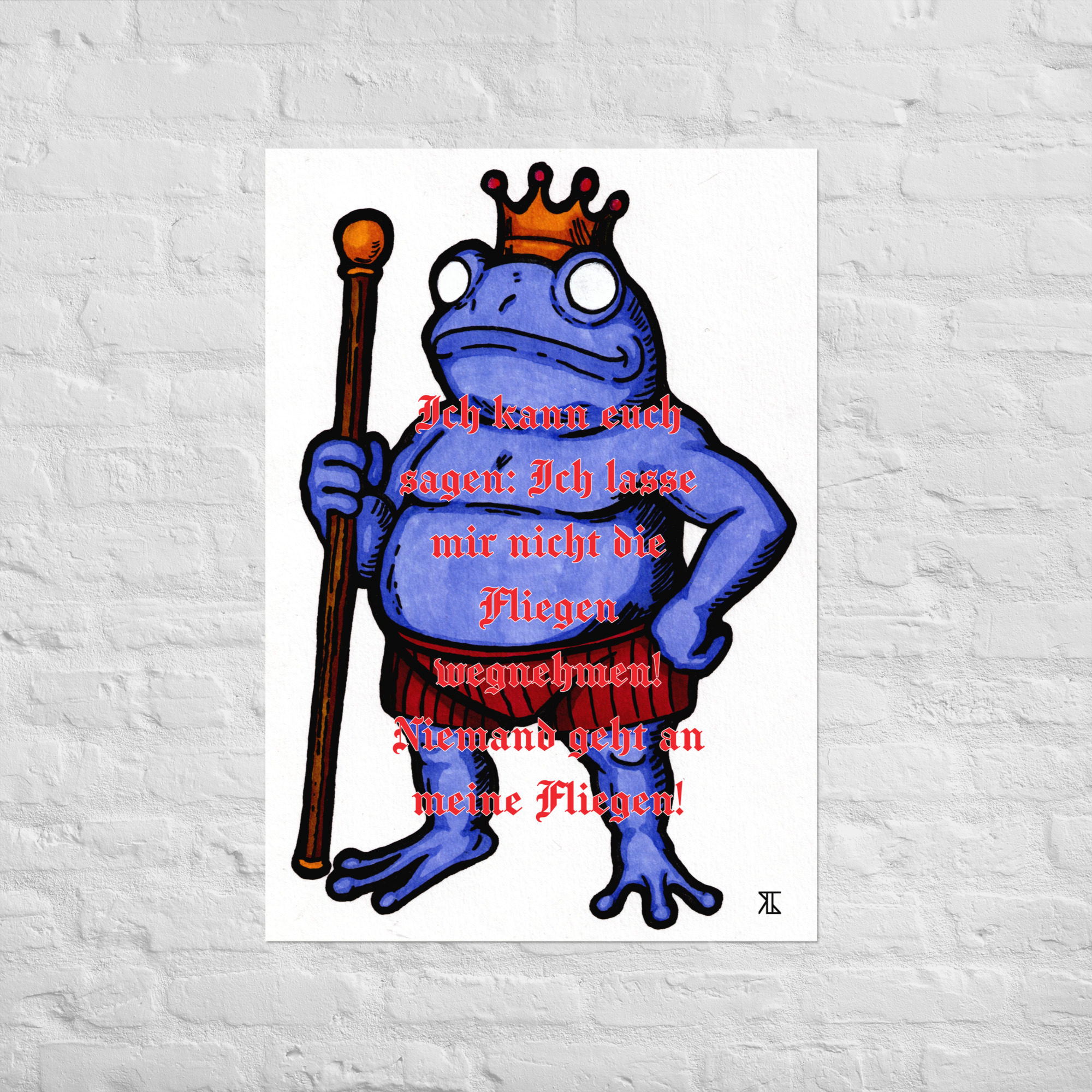 Digital bearbeitete Version des Froschkönigs als Kunstdruck mit Typografie in Rot. Museumsqualität auf mattem Papier.